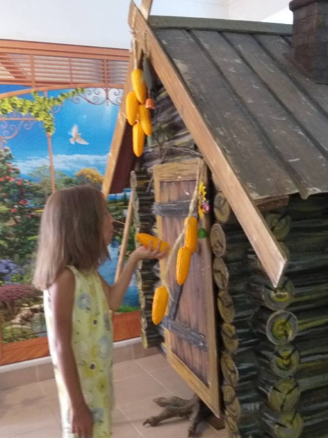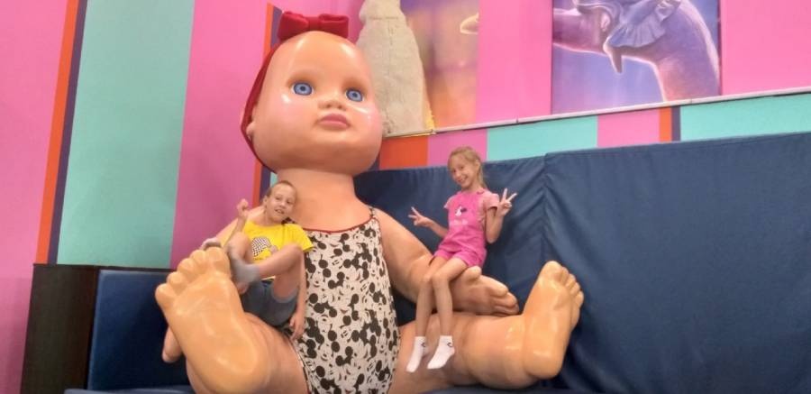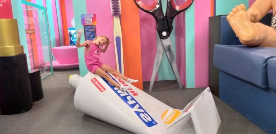 Летом мы посетили Дом великана в городе Казани. Оказавшись внутри, я чувствовала себя лилипутом в окружении мебели, посуды, обуви и предметов интерьера исполинских габаритов. В помещениях размещены экспонаты, копирующие повседневные вещи в увеличенном масштабе: тапочки, тюбик с зубной пастой, наручные часы, банки со сгущенкой и тушенкой, связка ключей, кубик Рубика и курительная трубка, блокнот с карандашом, ножницы и канцелярская кнопка.