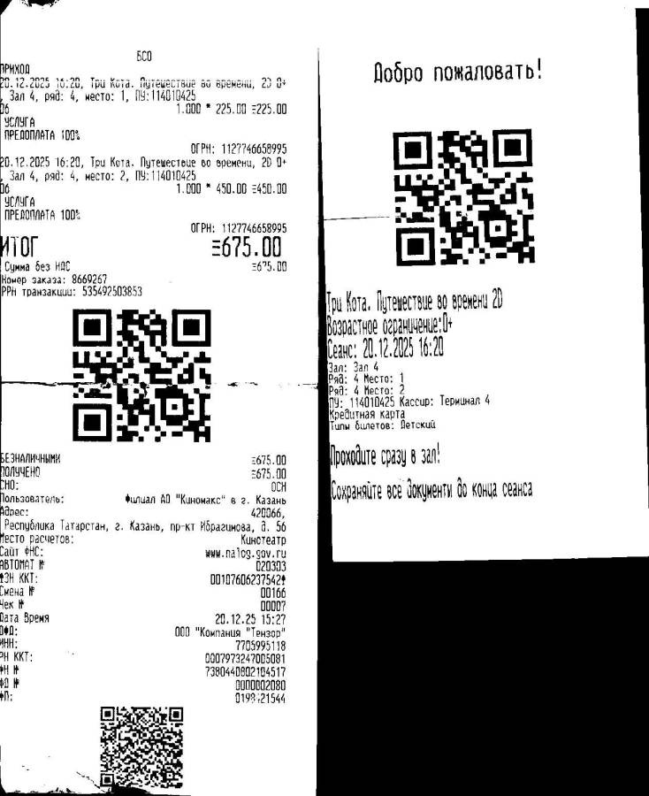 В тот же день 20.12.25 посмотрели с мамой мультфильм "Три кота: Путешествие во времени" в кинотеатре "Киномакс". Наши любимые котята - Карамелька, Коржик и Компот, снова в кино, да еще и в интересном мультфильме "Путешествие во времени"! Он состоит из нескольких короткометражек, одна из которых и называлась "Путешествие во времени". Все эти короткометражки были связаны между собой темой времени и его течения. Из одной из этих короткометражек мы узнали историю из детства мамы трех котов. Само "Путешествие во времени" было последней короткометражкой.