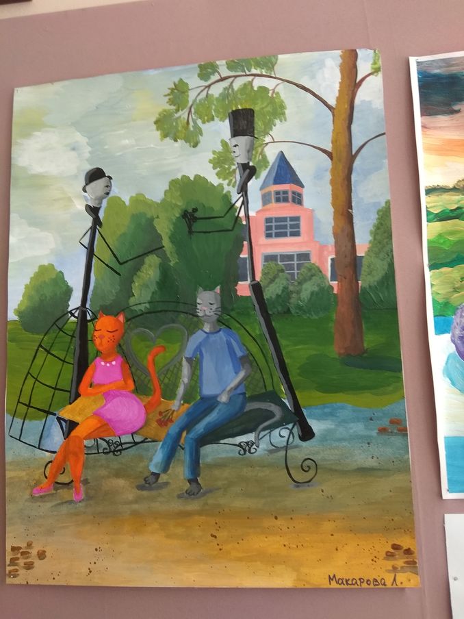 Так вот,у нас переодически в фойе школы меняются выставки работ учащихся. Хочу вам показать свежие!