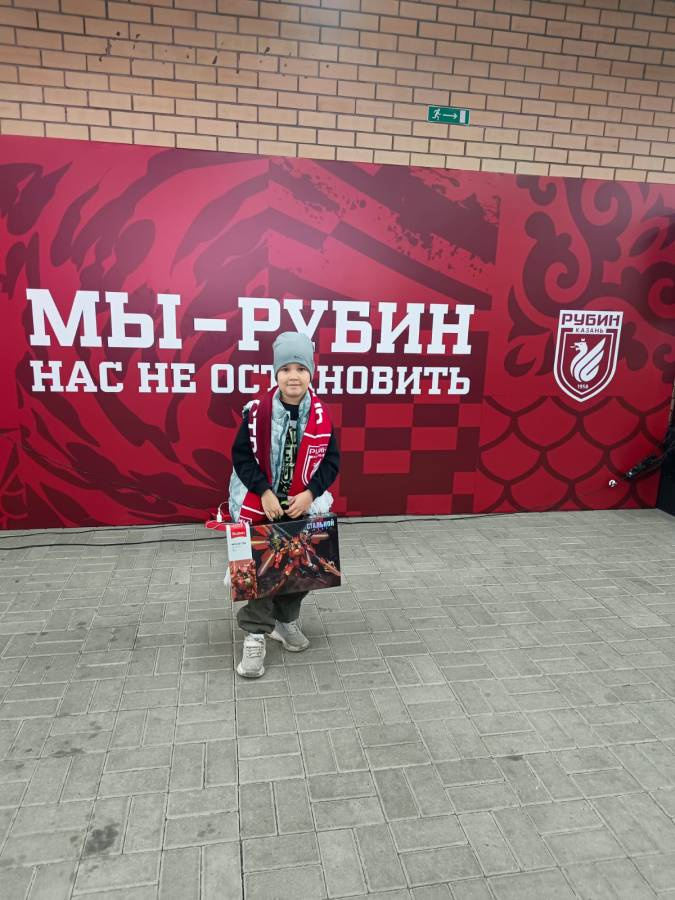 Я занимаюсь футболом и хожу на все матчи футбольной команды Рубин. На матче Рубин-Крылья Советов я принял участие в съемке проекта Рубин Дети и выиграл призы.