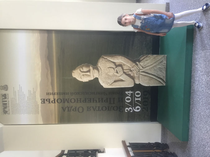 В выходные мы вместе с моей семьей и друзьями семьи пошли в Эрмитаж на выставку: *Золотая Орда и Причерноморье* я увидела там много старинной посуды, женские золотые украшения. Камни из которых стороили колодца и дома. Было очень интересно и познавательно.