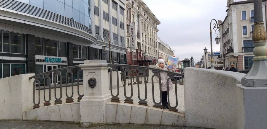 Гуляя по улице Петербургская мы увидели посередине улицы темную брусчатку, которая симулирует воду, а светлая плитка по ее краям — берег. Через «воду» раскиданы горбатые мосты. Хорошее место для ваших фотосессий.