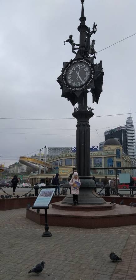 Выйдя через подземный переход мы увидели известные каждому жителю города Казани часы на Баумана.