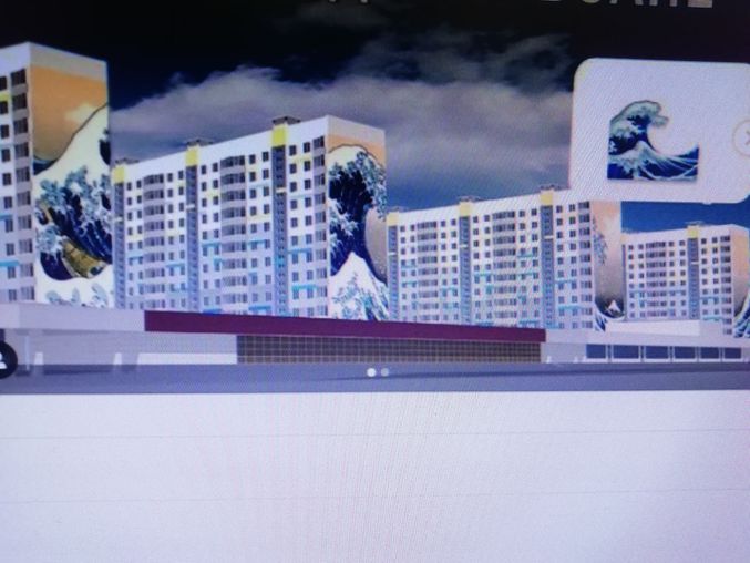 Совсем недавно в г. Набережные Челны завершили воссаздает картину японского художника Кацусики Хокусая. Выбор этих домов для мурала были выбраны неспроста, пр. Хасана Туфана ведёт к городской набережной, к берегу реки Кама А вот и сама картина, которую разделили на 4 части |