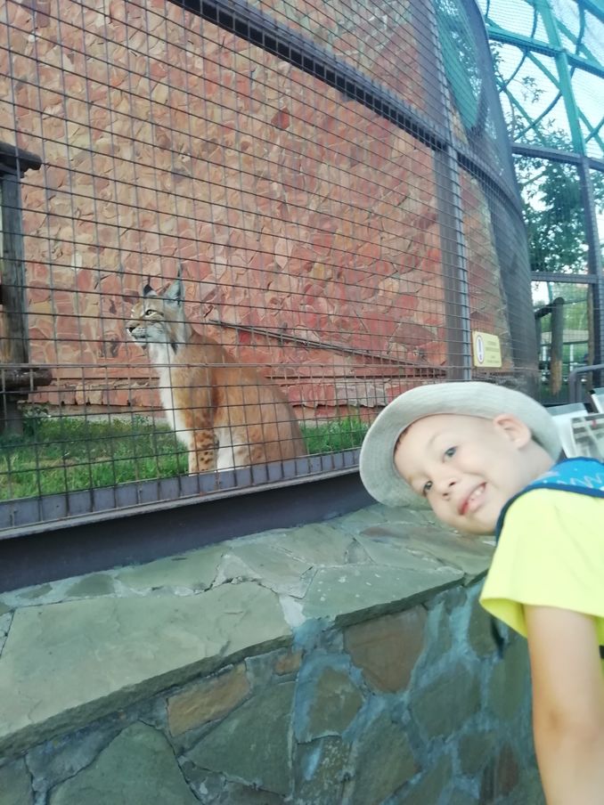 Я уже рассказывал, что был в ижевском зоопарке два раза за один день! Пришли мы примерно в 7-8 вечера, обычно в это время зоопарк уже закрыт. Вечером вышло много животных, которые днем прятались от жары очень много сов! Я их очень люблю, потому что я фанат Гарри Поттера, у меня дома много всяких игрушек и статуэток в виде сов они так смешно поворачивает головы Ещё вышла рысь, она гуляла по вольеру и с ней можно было сфотографироваться практически рядом А ещё белые волки выли вместе с собаками хаски мы с другом Мишей им весело подвывали Ещё были пингвины, лебеди, колики, ламы, лошади, яки и много других интересных животных Но больше всего нам понравился танцующий медведь! Он реально танцевал и выпрашивал еду (к сожалению не могу сюда прикрепить видео) это было очень смешно и забавно А ещё было выступление морских котиков и моржей, посмотрите какие они большие! Ушли мы из зоопарка поздно ночью и напоследок сфотографировались с изображением слона на стене |
