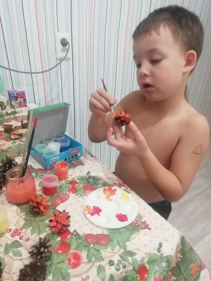 Мне понравилось разукрашивать шишки их я собирал в лесу, когда собирал грибы Как вам? Оцените красоту! |